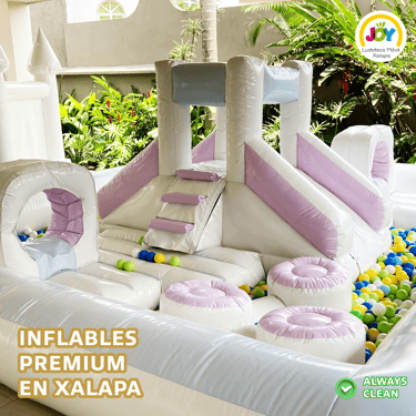 Palacio Joy: ¡Es imponente! El inflable más PRO tiene que estár en tu fiesta. Mide 7 x 5 mts y tiene 5 metros de alto. Tiene escaladora, tobogán y alberca de pelotas ¡Te lo súper recomendamos!